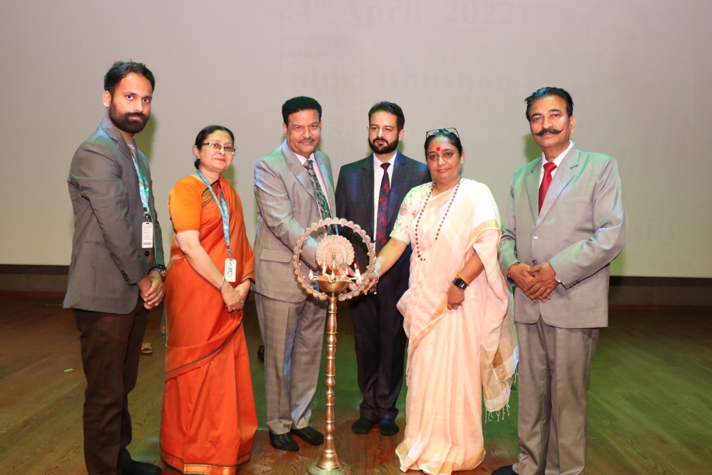 विश्वविद्यालय के कुलाधिपति जितेन्द्र जोशी द्वारा पुष्पगुच्छ देकर विधानसभा अध्यक्ष का स्वागत किया गया एवं उन्हें स्मृति चिन्ह भेंट किया। इस अवसर पर लाॅ काॅलेज के छात्रों को सेन्ट्रल हाॅल ऑफ पार्लियामेन्ट में प्रतिनिधित्व करने एवं कु0 निहारिका को “शक्तियों का विभाजन” विषय पर सम्बोधन के लिए लोक सभा अध्यक्ष ओम बिड़ला द्वारा भेंट की गई संविधान की मूल प्रति विधान सभा अध्यक्ष द्वारा कुलाधिपति जितेन्द्र जोशी को भेंट की गई।