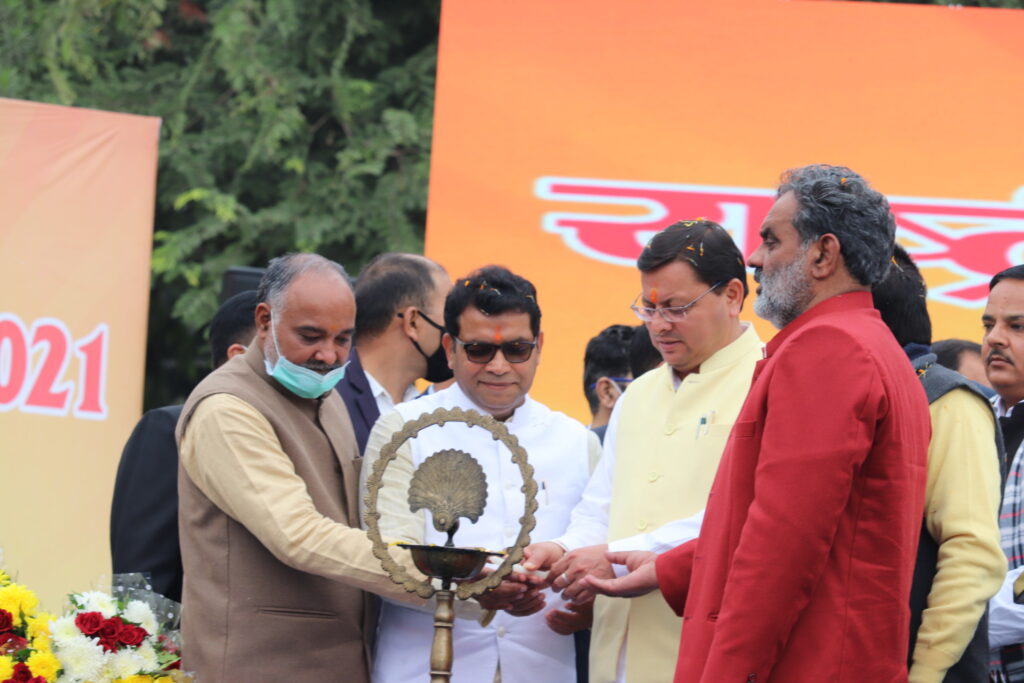 मुख्यमंत्री ने प्रधानमंत्री नरेन्द्र मोदी का आभार व्यक्त करते हुए कहा कि उन्होने लोकल फॉर वॉकल का मंत्र दिया है जिसके अन्तर्गत प्रतिभाओं को आगे आने का मौका मिले, उनके उत्पादों को बाजार मिले। प्रधानमंत्री नरेन्द्र मोदी को उत्तराखण्ड की विशेष चिंता रहती है, उत्तराखण्ड एकमात्र ऐसा प्रदेश है जिसमें दो एम्स है ताकि लोगो एम्स की तरह सारी चिकित्सा। उन्होंने कहा कि केन्द्र सरकार के सहयोग से टनकपुर से बागेश्वर रेल लाईन की मंजूरी मिल गई है साथ ही तराई-भावर की लाइफलाइन जमरानी बांध परियोजना की भी मंजूरी मिल चुकी है। महामारी में जो बच्चे अनाथ हो गए है उन्हे वात्सल्य योजना के अन्तर्गत 3000 रू प्रतिमाह भरण-पोषण हेतु भत्ता तथा शिक्षा का खर्च प्रदेश सरकार द्वारा किया जा रहा है। नवजात बच्चों की माताओं को जरूरी सामान की महालक्ष्मी किट दी जा रही है। स्वास्थ के क्षेत्र मे आयुष्मान भारत योजना जिन गरीबों के पास संसाधन नही है उनकी बीमारी में 05 लाख तक स्वास्थ खर्च सरकार द्वारा किया जायेगा। उन्होने बताया हमारी सरकार ने गन्ने की अगेती प्रजाति का मूल्य 355 रू प्रति कुन्तल तथा सामान्य प्रजाति का मूल्य 345 रू प्रति कुन्तल किया है।