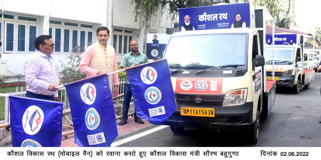 उत्तराखण्ड कौशल विकास मिशन (यूकेएसडीएम), उत्तराखण्ड सरकार और संयुक्त राष्ट्र विकास कार्यक्रम (यूएनडीपी), उत्तराखण्ड राज्य कार्यालय के तत्वावधान में उत्तराखण्ड राज्य में तीन कौशल रथ (मोबाइल वैन) को कौशल विकास मंत्री सौरभ बहुगुणा द्वारा विधान सभा से झंडी दिखाकर रवाना किया गया।