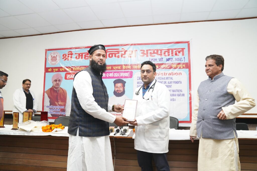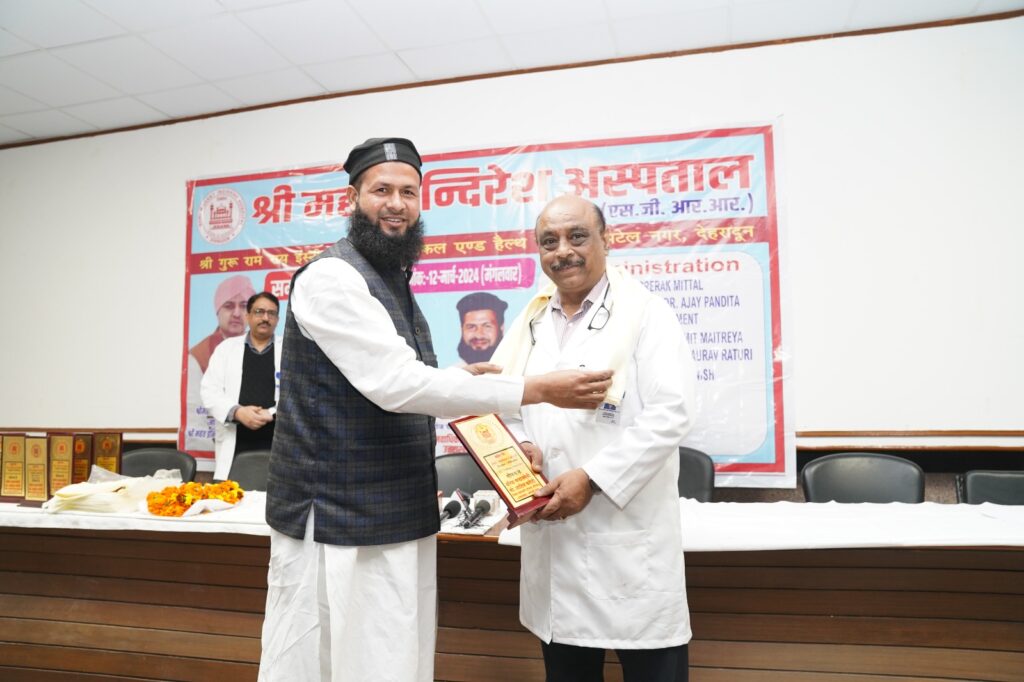 देहरादून, बिग न्यूज़ टूडे: डब्ल्यू एमएफ मानवाधिकार महासंघ उत्तराखण्ड ने श्री महंत इन्दिरेश अस्पताल को रमजान ए पाक एवम् नेक महीने में सम्मानित किया। महासंघ की ओर से श्री महंत इन्दिरेश अस्पताल के मुख्य चिकित्सा अधीक्षक डाॅ प्रेरक मित्तल, चिकित्सा अधीक्षक डाॅ अजय पंडिता, डायरेक्टर ग्रोथ एण्ड डेवलपमेंट एण्ड एडमिनिस्ट्रेशन डाॅ अजय मैत्रेय, वरिष्ठ न्यूरो सर्जन डाॅ पंकज अरोड़ा, कैंसर सर्जन डाॅ अजीत तिवारी, कार्डियोलाॅजिस्ट डाॅ साहिल महाजन एवम् नर्सिंग अधीक्षक अनीस को सम्मानित किया।