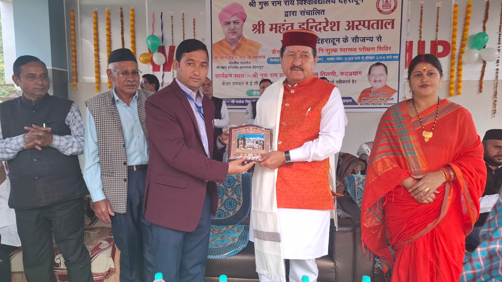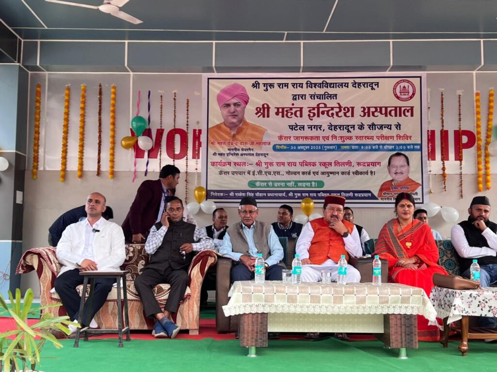 देहरादून। श्री गुरु राम राय विश्वविद्यालय एवम् श्री महंत इन्दिरेश अस्पताल, देहरादून के सौजन्य से श्री गुरु राम राय पब्लिक स्कूल, तिलणी, रुद्रप्रयाग में गुरुवार, 30 अक्टूबर 2025 को कैंसर जागरूकता एवं निःशुल्क स्वास्थ्य परीक्षण शिविर का सफल आयोजन किया गया। इस अवसर पर 2100 से अधिक मरीजों ने शिविर का लाभ उठाया। शिविर में अस्पताल के विशेषज्ञ चिकित्सकों ने स्वास्थ्य परामर्श दिया तथा रोगियों को निःशुल्क दवाइयाँ वितरित की गईं। गुरुवार को शिविर का शुभारंभ मुख्य अतिथि भरत चौधरी, विधायक, रुद्रप्रयाग, श्रीमती पूनम कठैत, जिला पंचायत अध्यक्ष, रुद्रप्रयाग, संतोष रावत, नगर पालिका अध्यक्ष, रुद्रप्रयाग, ओमप्रकाश सेमवाल संस्थापक कलश संस्था एवम् गढ़वाली कवि एवम् राकेश सिंह चैहान प्रधानाचार्य श्री गुरु राम राय पब्लिक स्कूल, तिलणी, रुद्रप्रयाग ने संयुक्त रूप से दीप प्रज्जवलित कर किया।