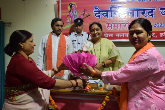 हरिद्वार में विश्व संवाद केंद्र द्वारा प्रेस क्लब के सभागार में अयोजित देवर्षि नारद जयंती समारोह का शुभारंभ मंगलवार को उत्तराखंड विधानसभा अध्यक्ष ऋतु खंडूडी भूषण ने विधिवत दीप प्रज्वलित कर किया| इस अवसर पर विधानसभा अध्यक्ष ने कहा कि नारद जी जिस तरह से तीनों लोकों में घूम घूमकर समाचारों का प्रचार प्रसार करते थे, उनके द्वारा प्रदत्त समाचार कई बार अप्रिय होते हुए भी लोक कल्याणकारी होते थे, वे पत्रकारिता का आदर्श थे| पत्रकारों के लिये आदर्श स्थिति यही है कि वे निष्पक्ष भाव से देवर्षि नारद की तरह अपनी भूमिका समाज के उत्थान के लिए तय करें|