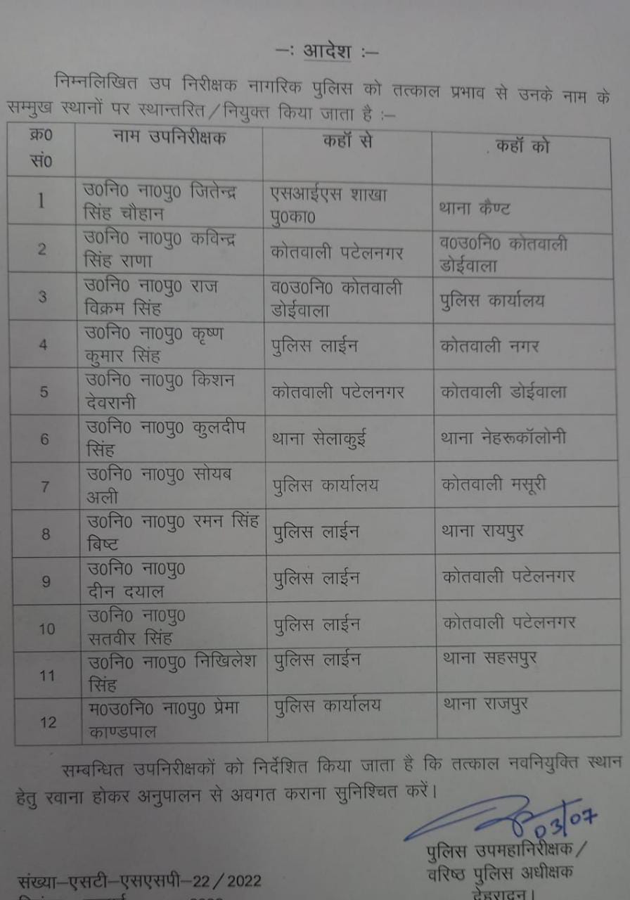 SSP देहरादून ने कर दिए 12 उपनिरीक्षकों के तबादले देखिए किसको कहा भेजा ! Uttarakhand July 3, 2022July 3, 2022Big News Today देहरादून ( Big News Today) देहरादून में एसएसपी जन्मेजय प्रभाकर खंडूरी ने कर दिए 12 उपनिरीक्षकों के तबादले ।