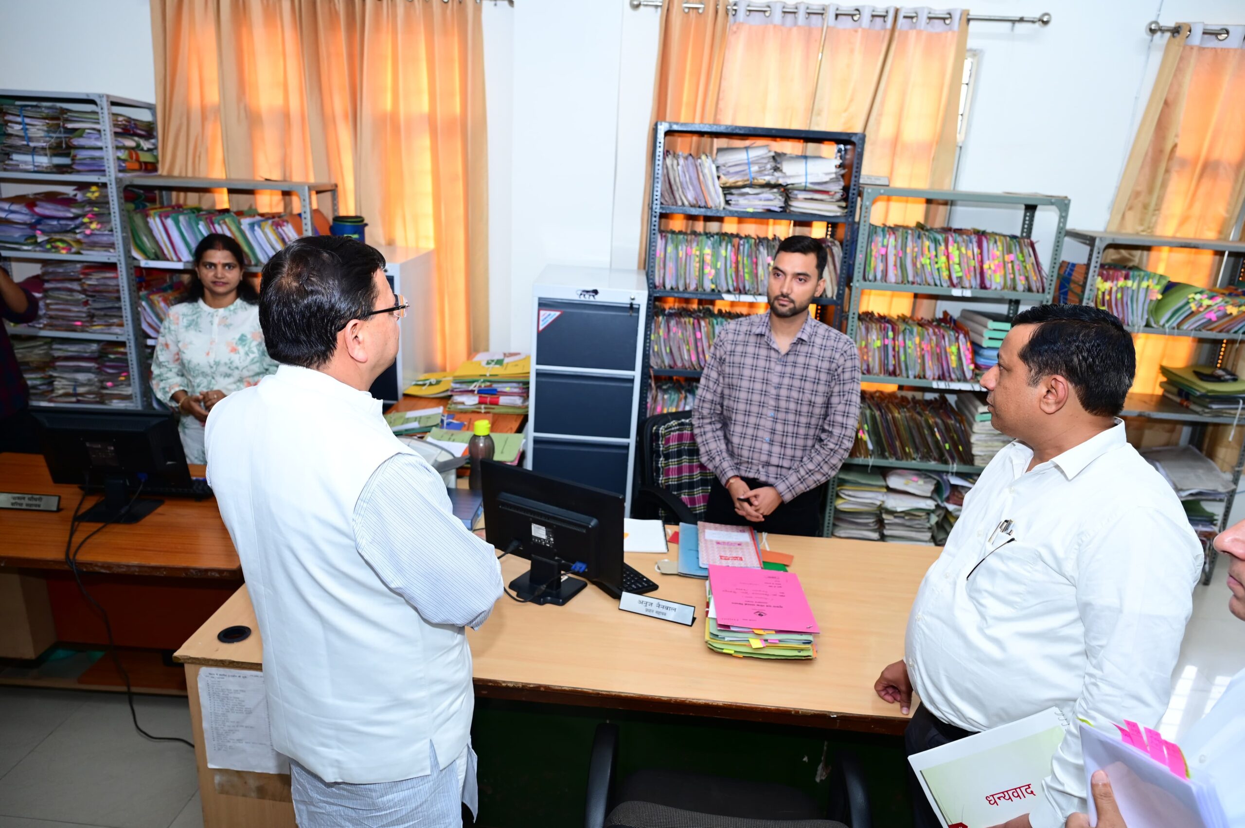 सूचना विभाग में निरीक्षण करते हुए मुख्यमंत्री पुष्कर धामी, साथ में डीजी सूचना बंशीधर तिवारी- फोटो