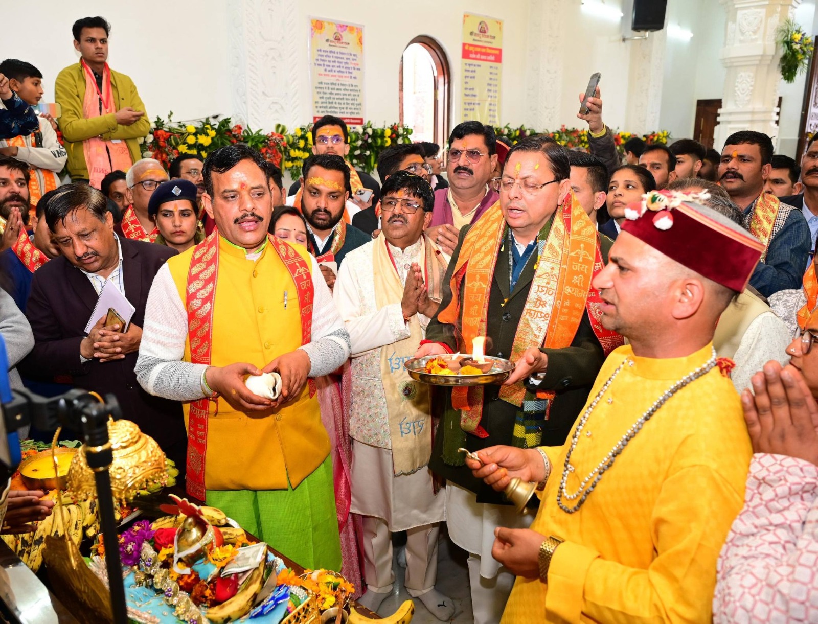 देहरादून। विकासनगर देहरादून में श्री खाटू श्याम धाम में प्राण प्रतिष्ठा महोत्सव के अवसर पर आयोजित कार्यक्रम में उत्तराखंड राज्य के मुख्यमंत्री पुष्कर सिंह धामी ने सम्मिलित होकर प्रभु श्री खाटू श्याम से समस्त प्रदेशवासियों के सुख-समृद्धि की कामना की। देवभूमि उत्तराखंड की पहचान समृद्ध सनातन संस्कृति, आध्यात्मिक परंपरा और आस्था से जुड़ी है। ऐसे दिव्य और भव्य धार्मिक आयोजन हमारी सांस्कृतिक विरासत को सशक्त करने के साथ-साथ नई पीढ़ी को अपनी जड़ों और सनातन मूल्यों से जोड़ने का महत्वपूर्ण माध्यम बनते हैं। इस अवसर पर विधायक मुन्ना सिंह चौहान, जिलाध्यक्ष मीता सिंह भी उपस्थित रहे।