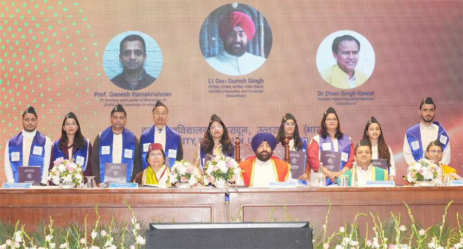 देहरादून। राज्यपाल एवं कुलाधिपति लेफ्टिनेंट जनरल गुरमीत सिंह (से नि) ने सोमवार को दून विश्वविद्यालय के छठे दीक्षांत समारोह में प्रतिभाग किया। दीक्षांत समारोह के अवसर पर राज्यपाल ने विभिन्न संकायों के 42 छात्र-छात्राओं को स्वर्ण पदक से सम्मानित किया, जिसमें से 34 पदक प्राप्त कर छात्राएँ अव्वल रहीं, जिस पर उन्होंने विशेष प्रसन्नता व्यक्त की। विद्यार्थियों को संबोधित करते हुए राज्यपाल ने कहा कि दीक्षांत केवल उपाधि प्राप्ति का क्षण नहीं, बल्कि छात्र से जिम्मेदार नागरिक बनने की यात्रा का आरम्भ है। उन्होंने इसे अमृत पीढ़ी के परिश्रम, अनुशासन और संकल्प का उत्सव बताया। राज्यपाल ने उपाधि तथा पदक प्राप्त करने वाले सभी मेधावी छात्र-छात्राओं, उनके अभिभावकों और शिक्षकों को हार्दिक बधाई एवं शुभकामनाएँ देते हुए इसे विद्यार्थियों की व्यक्तिगत उपलब्धि के साथ-साथ उनके माता-पिता के त्याग, शिक्षकों के मार्गदर्शन और दून विश्वविद्यालय की सकारात्मक शैक्षणिक संस्कृति का परिणाम बताया। विश्वविद्यालय द्वारा इस वर्ष दीक्षांत समारोह की विषयवस्तु को कृत्रिम बुद्धिमत्ता (एआई) पर केंद्रित किया गया, जिस पर प्रकाश डालते हुए राज्यपाल ने तकनीक और विशेष रूप से आर्टिफिशियल इंटेलिजेंस के संदर्भ में कहा कि वर्तमान समय का यह एक सशक्त माध्यम है, जो शिक्षा, अनुसंधान और कार्यशैली को नई दिशा दे रहा है। अपने सम्बोधन में राज्यपाल ने दीक्षांत समारोह के मुख्य वक्ता एवं आईआईटी बॉम्बे के प्रोफेसर गणेश रामकृष्णन द्वारा ‘BharatGen’ जैसी स्वदेशी एआई पहल का उल्लेख करते हुए कहा कि भारतीय भाषाओं और संस्कृति के अनुरूप तकनीकी समाधान विकसित करने से तकनीक वास्तव में जन-जन तक पहुँचती है। राज्यपाल ने दून विश्वविद्यालय सहित देश की अमृत पीढ़ी के युवाओं से आह्वान किया कि वे एआई का नैतिक, मानवीय और समाजोपयोगी उपयोग करते हुए उत्तराखण्ड की भौगोलिक चुनौतियों और स्थानीय समस्याओं के समाधान हेतु नवाचार-आधारित कार्य करें। इस अवसर पर राज्यपाल ने कहा कि विकसित भारत @2047 का लक्ष्य केवल आर्थिक प्रगति नहीं, बल्कि सामाजिक न्याय, सांस्कृतिक गौरव और मानवीय मूल्यों से युक्त राष्ट्र-निर्माण का संकल्प है, जिसमें युवाओं की भूमिका निर्णायक होगी। उन्होंने राष्ट्रीय शिक्षा नीति-2020 को दूरदर्शी पहल बताते हुए कहा कि इसका उद्देश्य ‘जॉब सीकर’ नहीं, बल्कि ‘जॉब क्रिएटर’ तैयार करना है, और दून विश्वविद्यालय इस दिशा में सार्थक प्रयास कर रहा है। उत्तराखण्ड की भौगोलिक चुनौतियों का उल्लेख करते हुए राज्यपाल ने कहा कि पलायन और आपदा-संवेदनशीलता जैसी समस्याओं का समाधान स्थानीय नवाचार, स्वरोजगार और सतत विकास में निहित है। उन्होंने छात्राओं की बड़ी भा