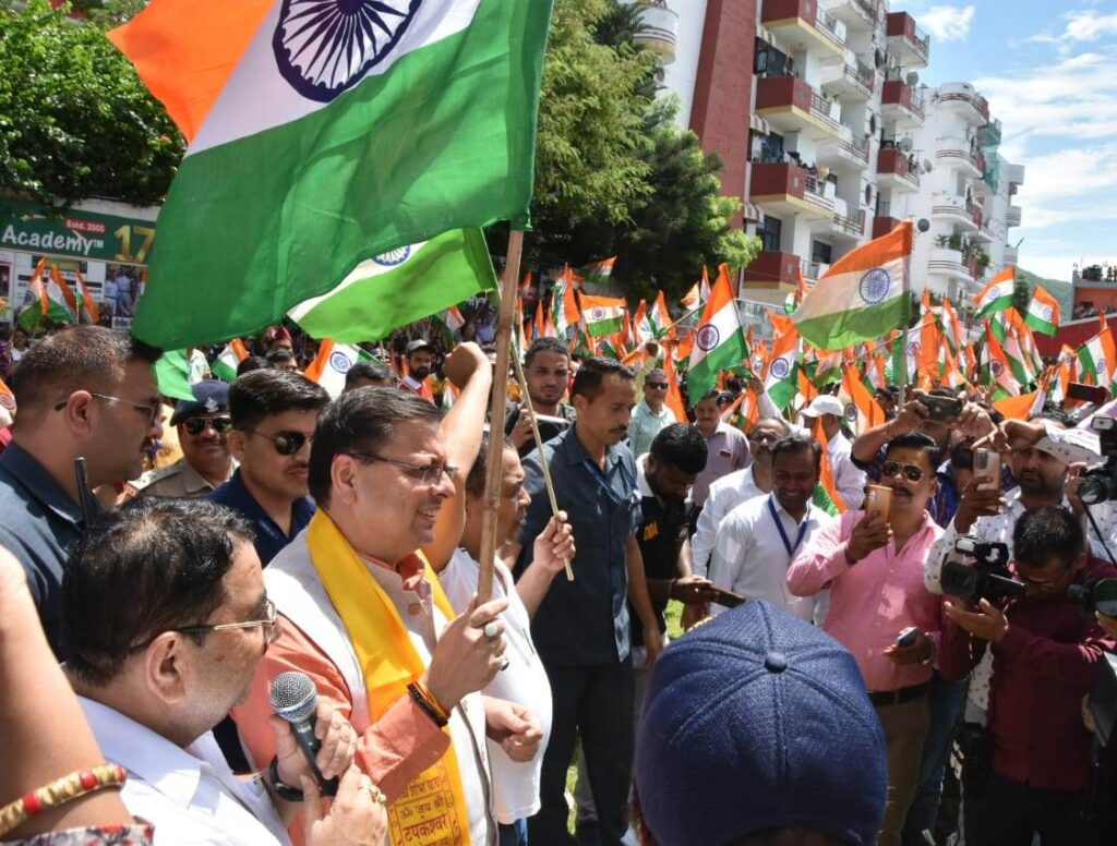 देहरादून, बिग न्यूज़ टूडे: मुख्यमंत्री पुष्कर सिंह धामी ने मंगलवार का सहस्त्रधारा रोड स्थित आई.टी.पार्क चौक में रायपुर विधानसभा क्षेत्र के अन्तर्गत ‘हर घर तिरंगा’ जन जागृति अभियान के अन्तर्गत आयोजित रैली में प्रतिभाग किया। इस अवसर पर रायपुर विधायक उमेश शर्मा ‘काऊ’ भी मौजूद थे।