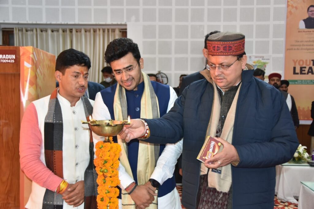 इस अवसर पर सांसद तेजस्वी सूर्या ने कहा कि उत्तराखण्ड देव भूमि है। आदि शंकराचार्य ने कर्नाटक में श्रृंगेरी मठ तथा बद्रीनाथ व केदारनाथ में धर्म पुनरोत्थान का कार्य कर कर्नाटक और उत्तराखण्ड को जोड़ने का भी कार्य किया। उन्होंने कहा कि उत्तराखण्ड वीर भूमि भी है। इंडियन मिलिट्री एकेडमी से पास आउट होने वाले सैन्य अफसरों में 10 प्रतिशत उत्तराखण्ड के होते हैं, जबकि राष्ट्रीय जनसंख्या में उत्तराखण्ड का औसत 1 प्रतिशत ही है। उन्होंने कहा कि उत्तराखण्ड की भूमि ने देश का पहला सीडीएस दिया है, इस अवसर पर उन्होंने दिवंगत सीडीएस जनरल बिपिन रावत का भी स्मरण कर नमन किया। सूर्या ने युवा मुख्यमंत्री पुष्कर सिंह धामी के कार्यों की सराहना करते हुए कहा कि उन्होंने 5 माह में 5 वर्ष के बराबर कार्य किया है। वे युवा राजनीति के प्रेरणास्त्रोत बन गये हैं। उन्होंने युवाओं का आह्वान किया कि उन्हें राजनीति का हिस्सा बनना होगा, अपने मताधिकार का प्रयोग करना होगा। यह जन सेवा का आधार भी है। उन्होंने कहा कि युवा देश का भविष्य हैं, उन्हें देश के विकास में भागीदार बनना होगा।