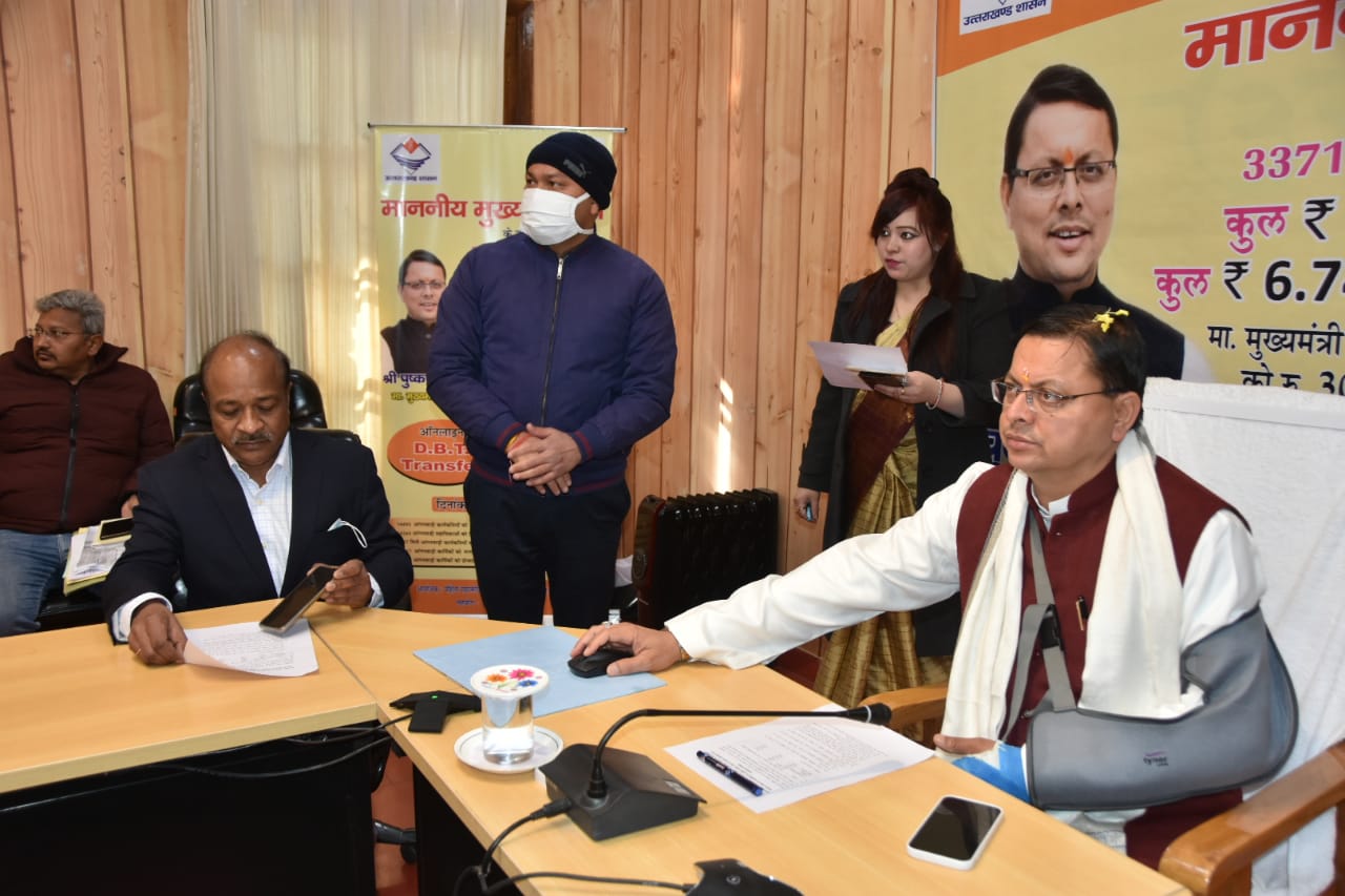 मुख्यमंत्री पुष्कर सिंह धामी ने कहा कि कोविड काल में राज्य सरकार द्वारा प्रदेश में हर वर्ग के लोगों को राहत देने का कार्य किया गया। कोविड के दौरान सराहनीय कार्य करने वाले फ्रंट लाईन वर्कर को प्रोत्साहन राशि भी दी गई। राज्य में सीमित संसाधन होने एवं कोविड के कारण राजस्व में वृद्धि न होने के बावजूद भी समाज के हर वर्ग को राहत देने के प्रयास किये गये हैं। लाभार्थियों को डीबीटी के माध्यम से समय पर भुगतान किया जा रहा है। स्वास्थ्य, चिकित्सा, संस्कृति, परिवहन एवं अन्य क्षेत्रों में कार्य कर रहे लोगों की हर संभव मदद की गई। जन समस्याओं के समाधान के लिए राज्य सरकार द्वारा लगातार प्रयास किये गये। समाज के अंतिम पंक्ति पर खड़े लोगों को ध्यान में रखते हुए योजनाएं चलाई जा रही हैं।