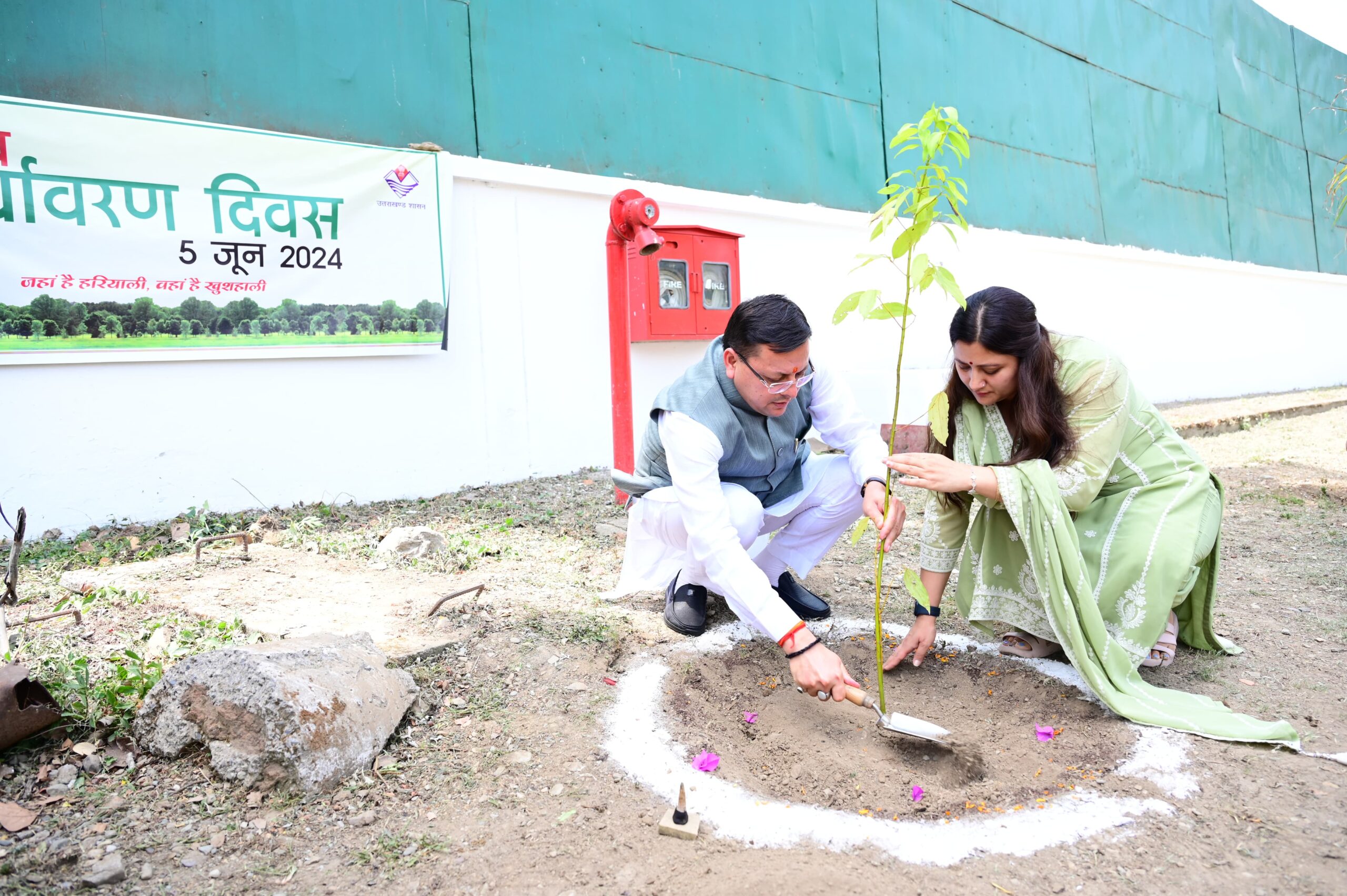इस अवसर पर मुख्यमंत्री की पत्नी गीता धामी, विधायक किशोर उपाध्याय, फकीर राम टम्टा और पूर्व वन मंत्री दिनेश अग्रवाल ने भी वृक्षारोपण किया।