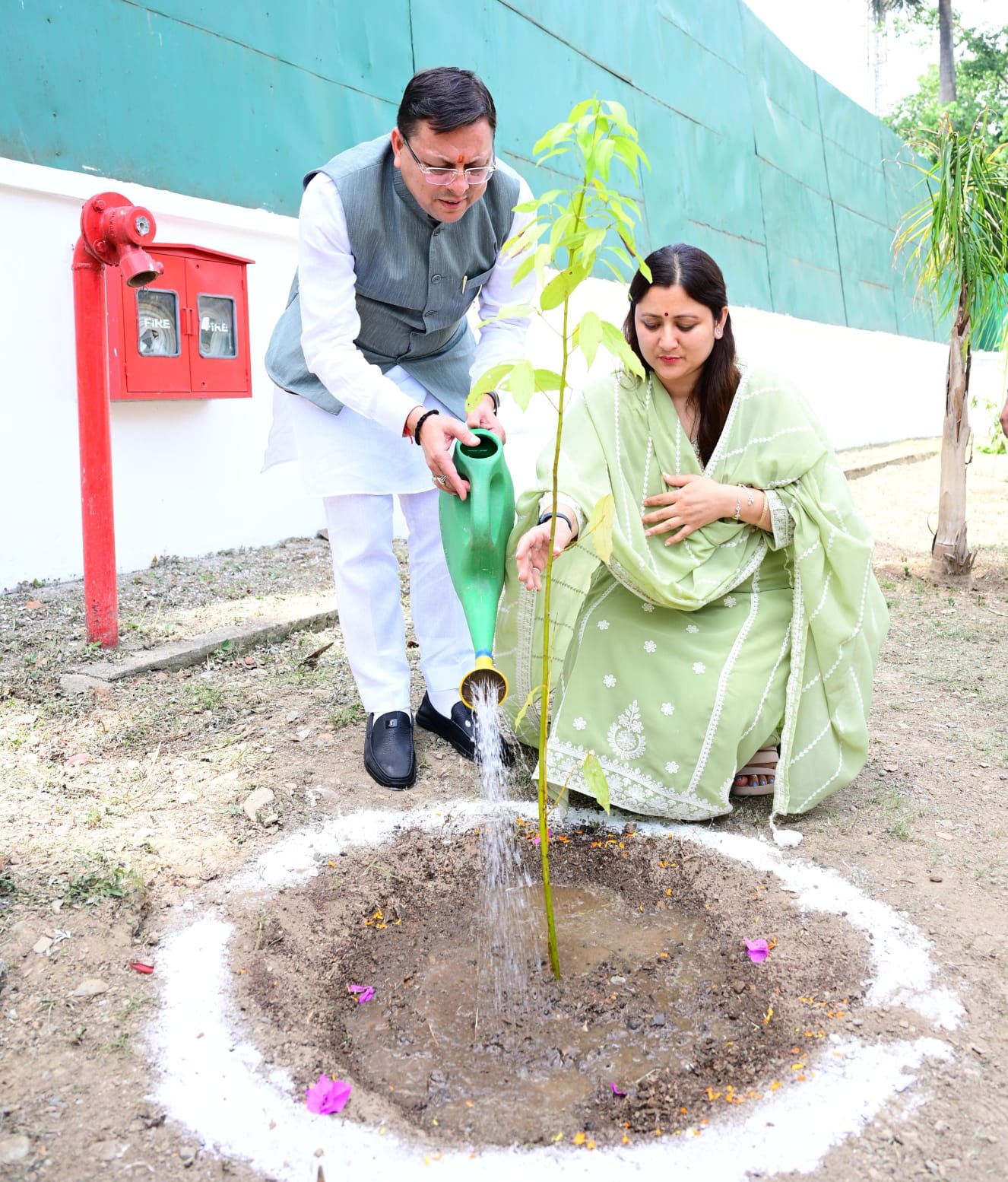 इस अवसर पर मुख्यमंत्री की पत्नी गीता धामी, विधायक किशोर उपाध्याय, फकीर राम टम्टा और पूर्व वन मंत्री दिनेश अग्रवाल ने भी वृक्षारोपण किया।